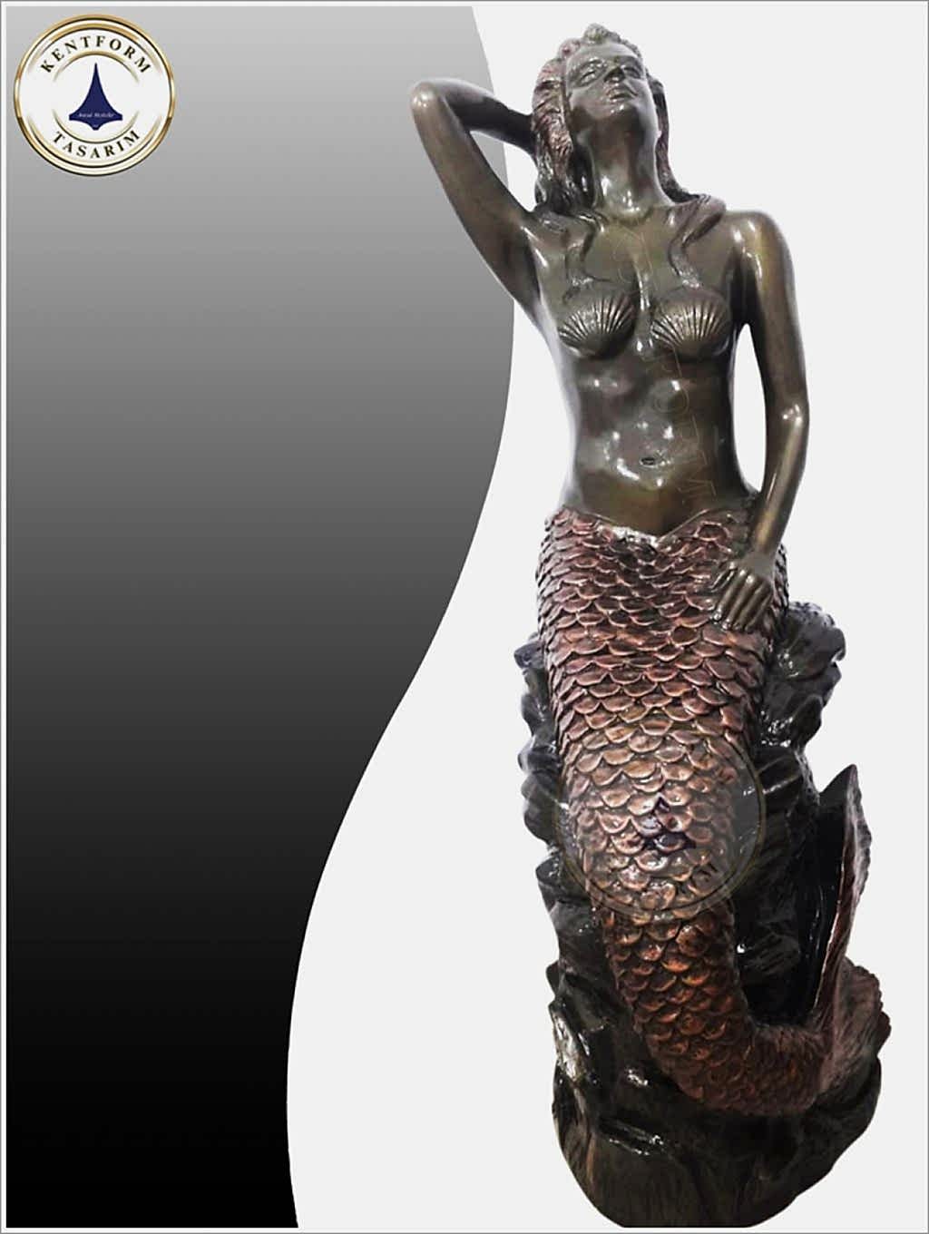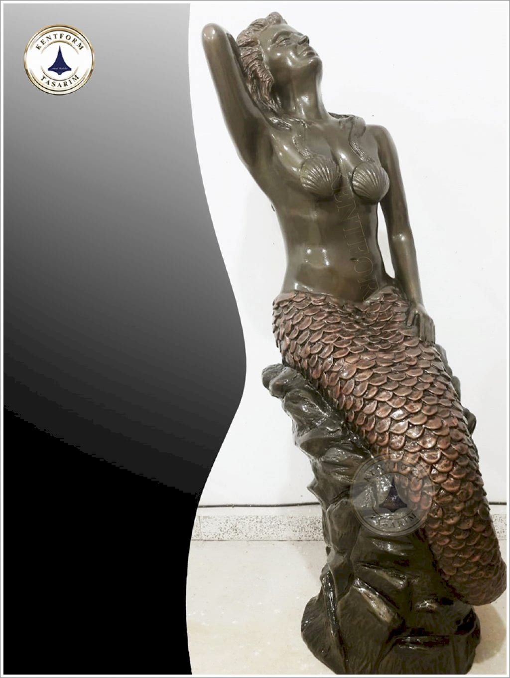 Deniz Kızı Heykeli bronz renk patina yöntemi ile bronz efektleri uygulanmıştır.