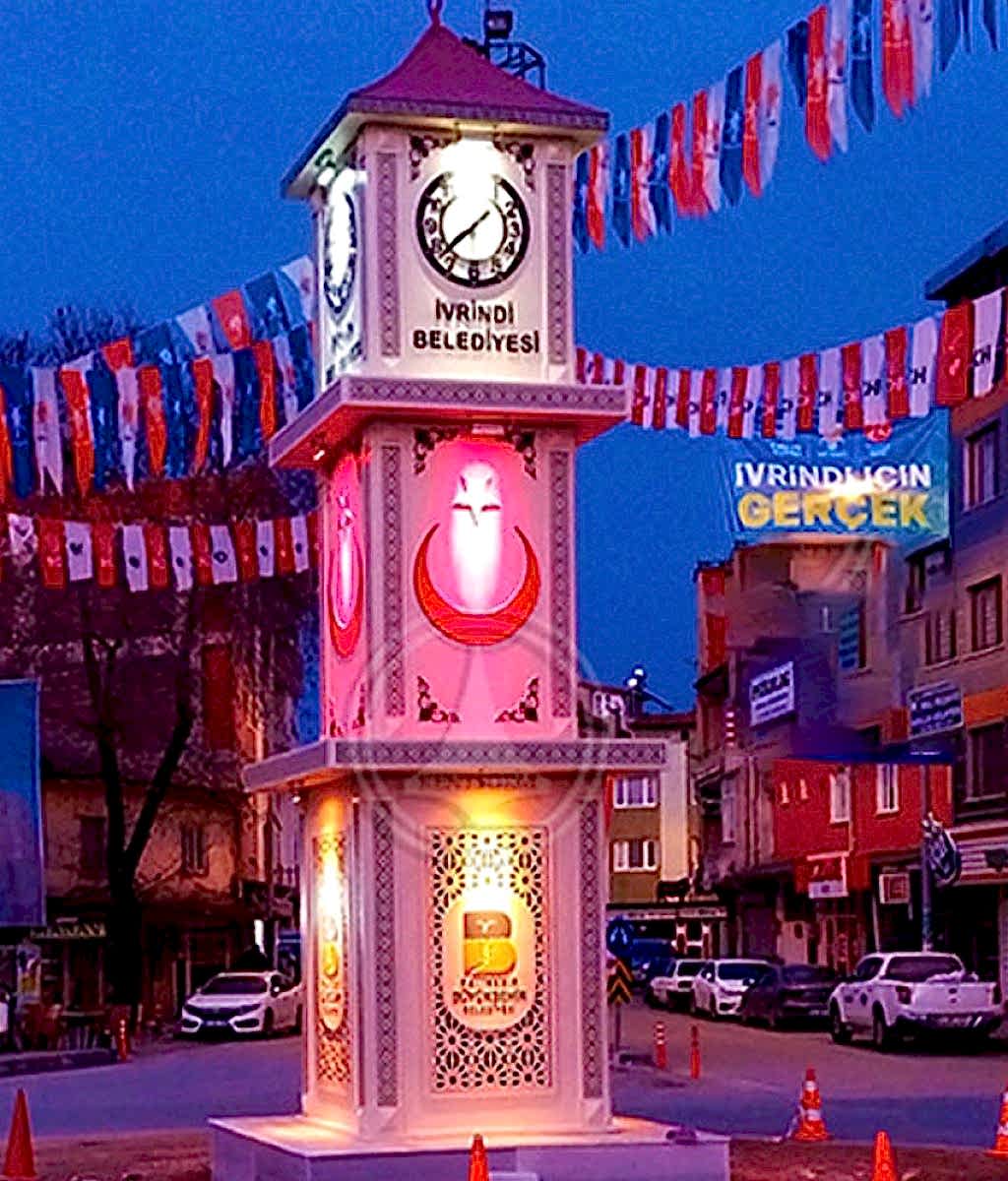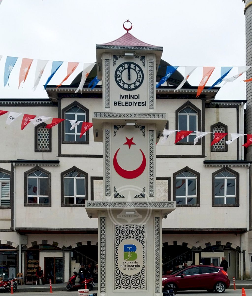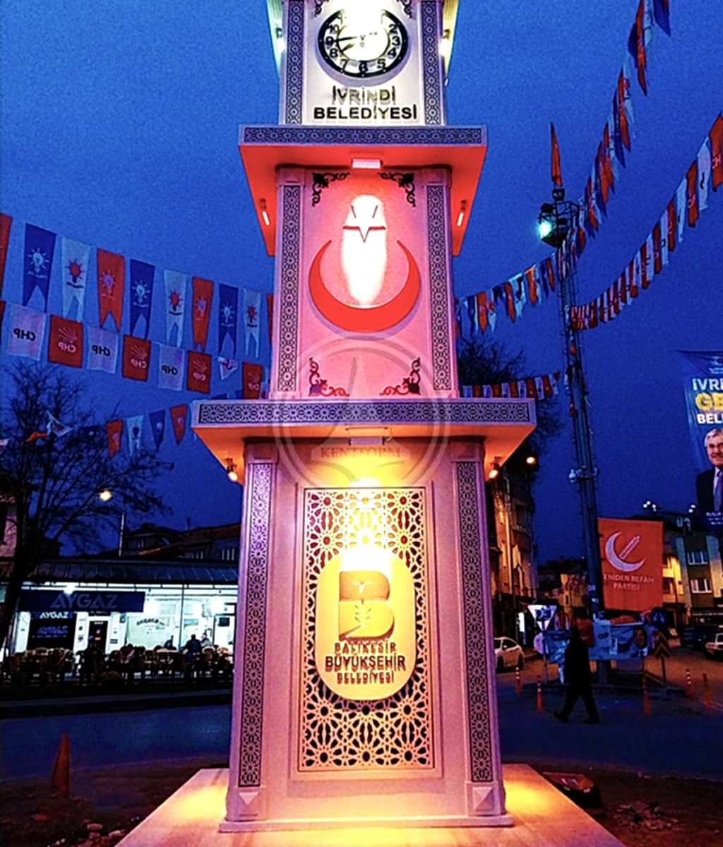Özel lazer kesim dekoratif motifli Ay-Yıldız temalı saat kulesi çalışması