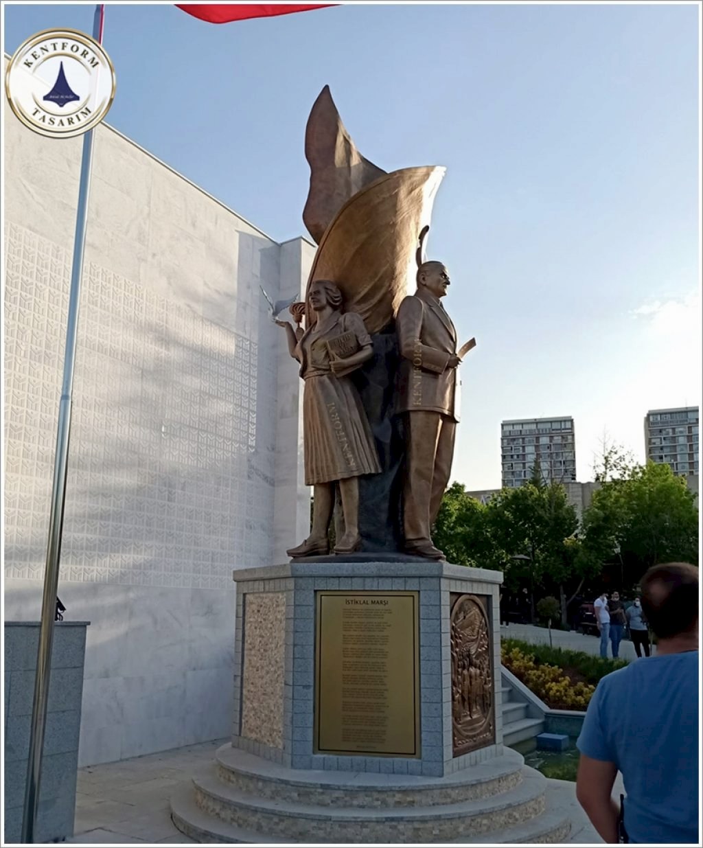 Kentform Atatürk’ün Cumhuriyet ve Gençlik Anıtında, genç kızının elinde barışı simgeleyen güvercin figürü bulunur. Erkek gencin elinde ise aydınlığı simgeleyen meşale yer almaktadır. Bu anıt, meydan anıtı olarak 650 cm yükseklikte tasarlanmıştır.