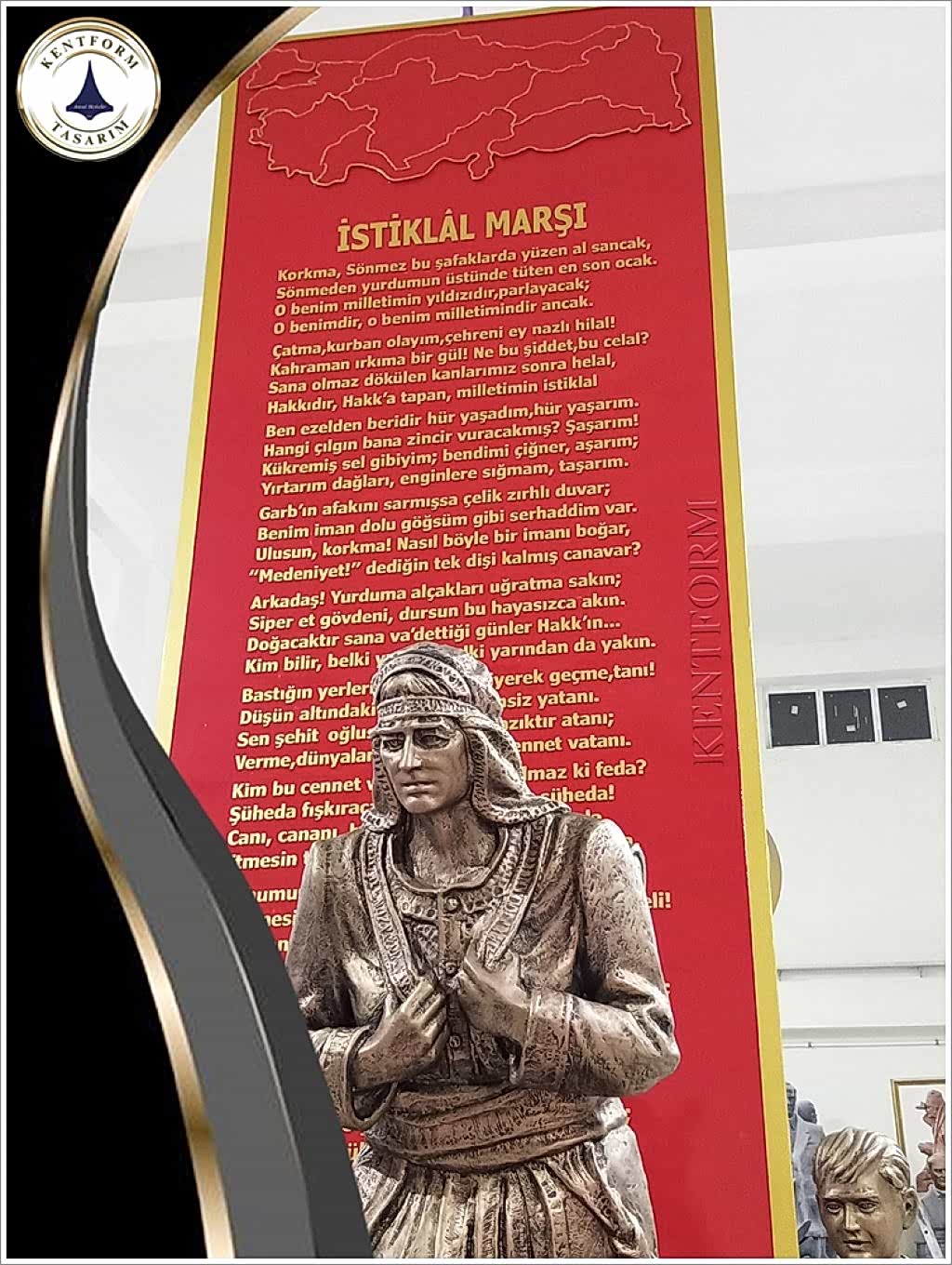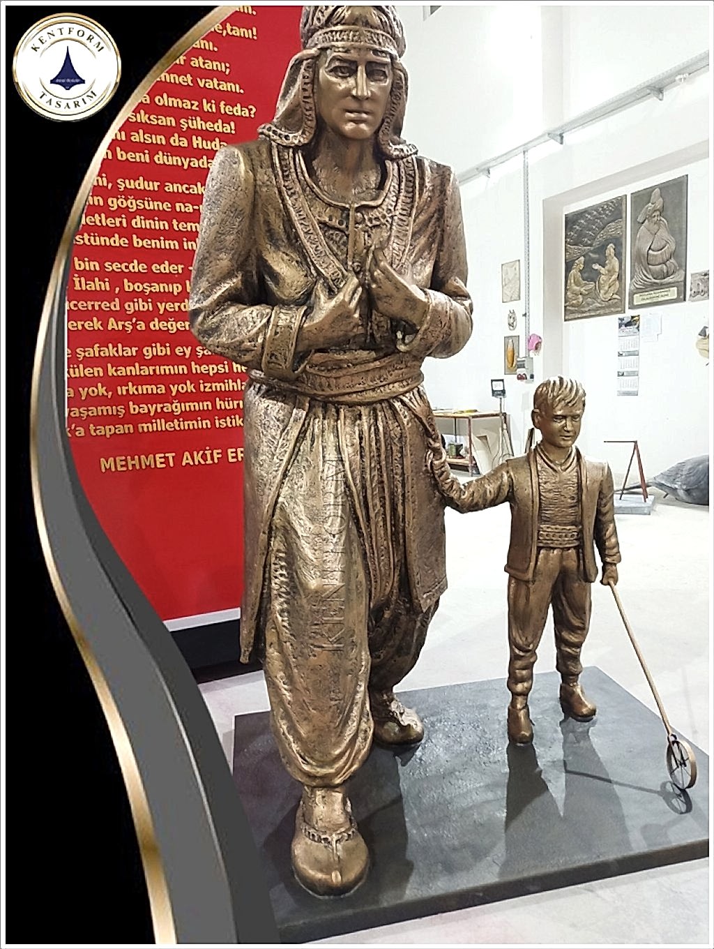 Kurtuluş Savaşında Cephedeki Türk askerlerine sırtında mermi taşırken Kastamonulu Şerife Bacı Anıtsal Heykel çalışması olarak tasvir edilmiştir.